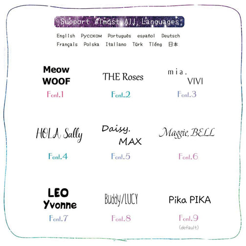 Clear and elegant fonts to add a touch of style to your pets tags.